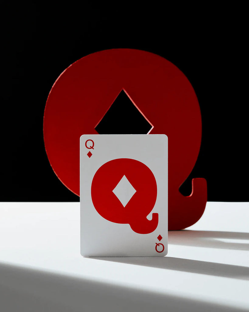 このトランプはクラシカルなトランプデザインを現代的に再解釈したもので、余計な装飾は全て取り除いてありますが、とても個性的なデザインになっています。